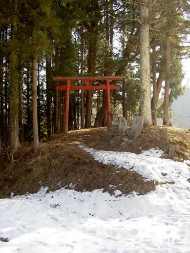 鬼の塚入り口に建つ鳥居。奥には墓しかないのに鳥居とは奇妙な感じだが、神聖な場所とされているのが分かる。