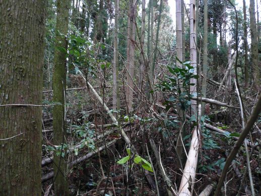 狭山田女:ここ?!う~ん、ただの竹薮にしか見えないけど。あっ、でもちょっと真ん中が盛り上がってるなあ。これがそうなのかな?