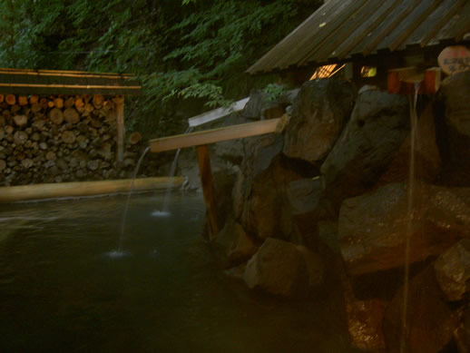 丸子の湯の案内。丸子部と出雲の関係が語られている。![]() 一の坊の湯船へ続く道。凝った内装と迷路のように長く入り組んだ道が楽しい。 |