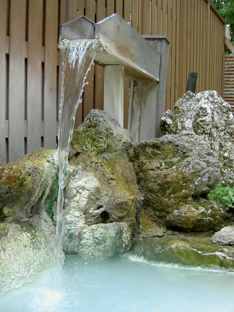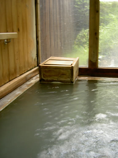 筆者が訪れたのは騒動前も騒動後も同じ「泡の湯」。大正時代から建つという由緒ある旅館。ここは入浴剤混入とは無関係のようだが、騒動直後ということで本来八百円のところが五百円に割引されていた。日帰り入浴は基本的に宿泊客とは別施設の外来用外湯のみなのだが、早い時間のうちは旅館内の内湯と大野天風呂も入浴できる(料金は外来用とは別々)。大野天風呂は混浴で巨大な露天風呂だが湯温はぬるめ。自家源泉100%でかけ流し(循環させていない)ということなので源泉そのままの温度なのだろうか。内湯は空気にあまり触れていないためか濁り具合は薄い。しかし外来用と両方入るのならばむしろ内湯を楽しむべきか。なおこの「泡の湯」だけは温泉街から外れたやや上方の山の中にある。上の写真は「泡の湯」の外来湯。