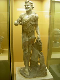 | この躍動感ある独特のポーズの裸体の青年像は、愛の神エロス(右の写真の文参照)だったか太陽神アポロンだったか。サイズとしては人間の等身大くらいだったと思う。 |