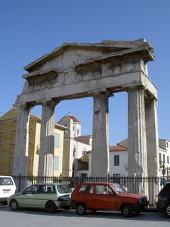 | ローマン・アゴラの西門に当たるアテナ・アルケゲテス門。ドーリス式。 | アゴラ内側から見たアテナ・アルケゲテス門。 |